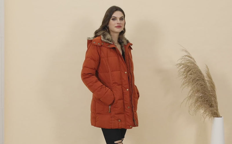 Women's Winter Hooded Parka Coat with Faux Fur Lined