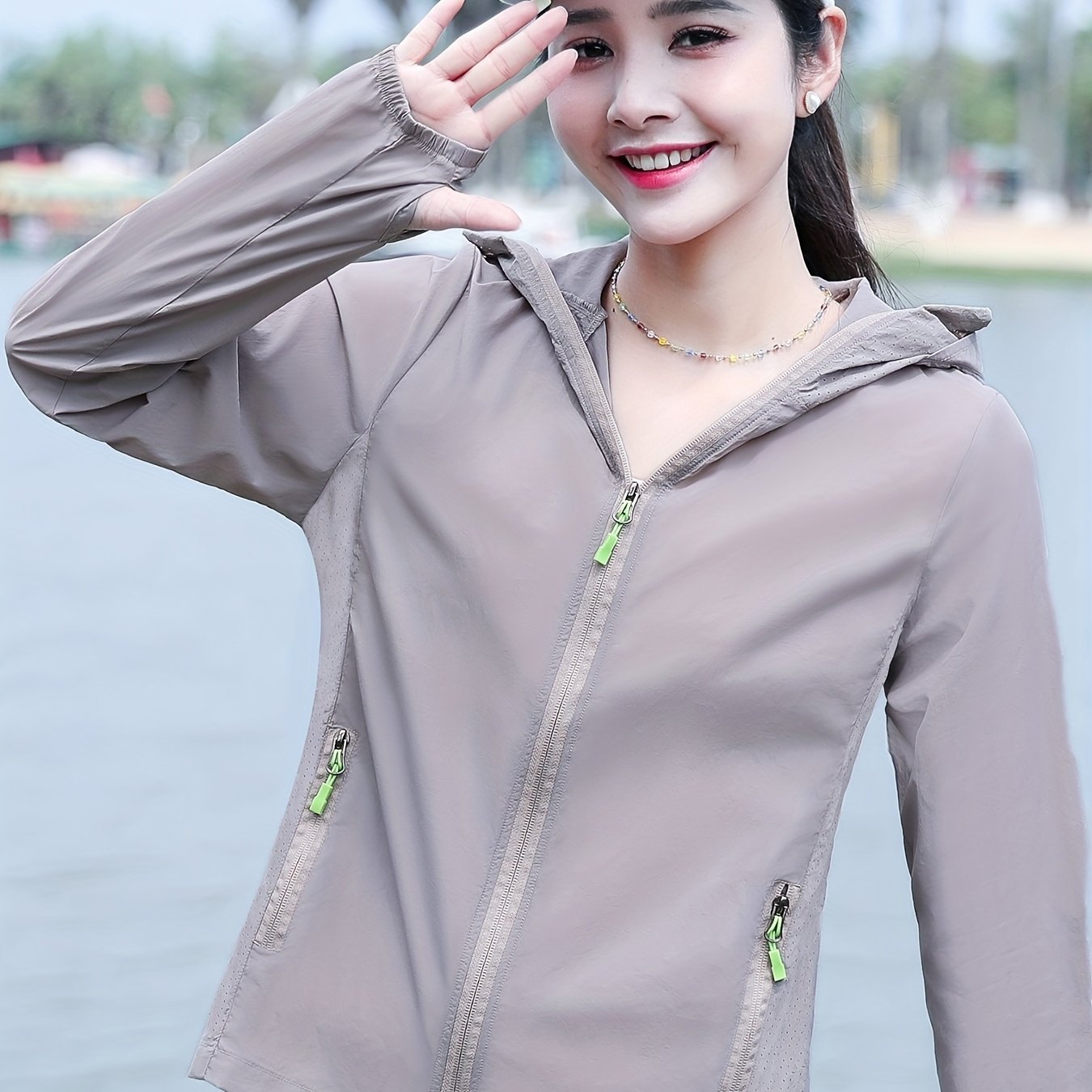 [UV Protection|Breathable] UV Protection | Women's Summer 2024 Hooded Jacket | Breathable Nylon, Long Sleeve, Zip-Up Sun Shirt with Thumb Holes for Secure Fit, Ideal for Casual Outings