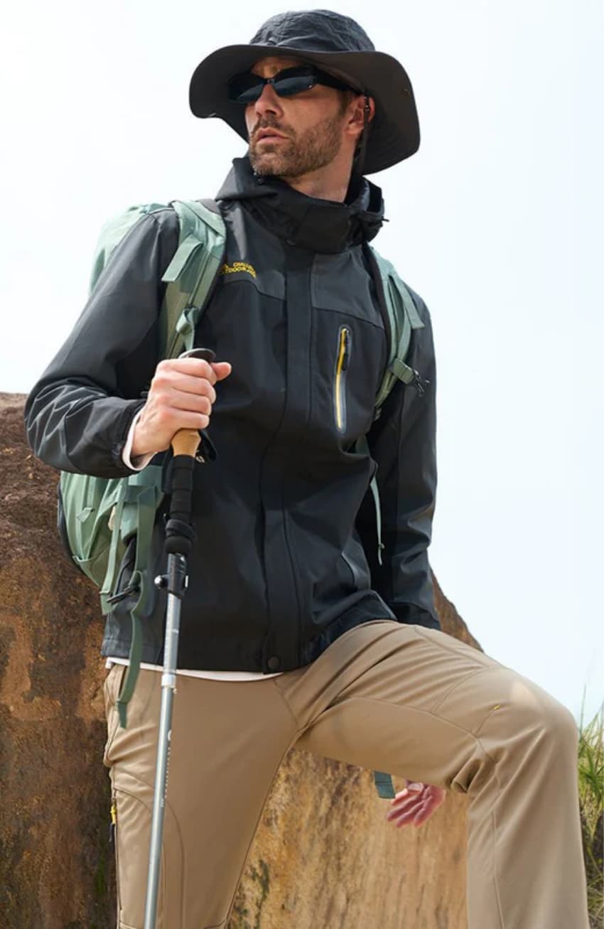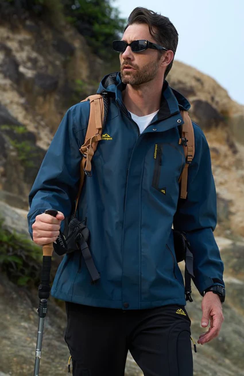 Men's Lightweight Rain Jacket with Detachable Hood for Hiking