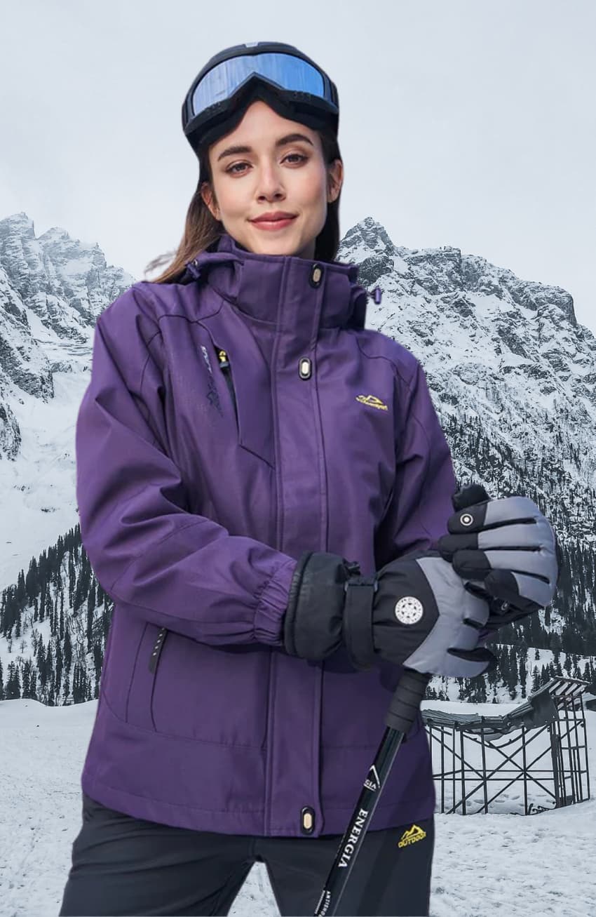 Women's Waterproof Fleece-Lined Ski Jacket with Hood